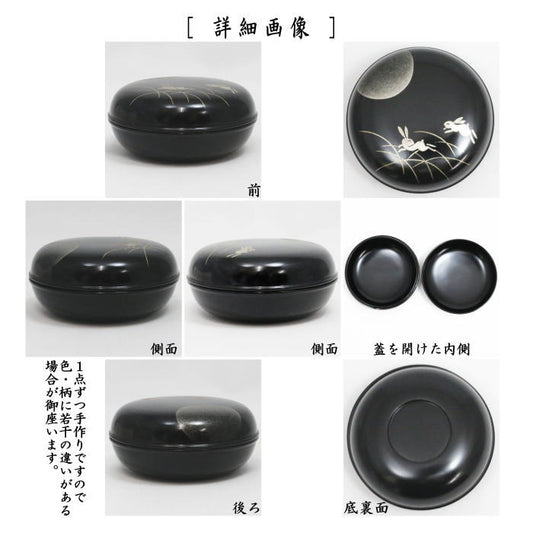 【茶器/茶道具 香合 お月見】 丸香合 真塗り 月に兎蒔絵 宮田宗景作 (うさぎ・ウサギ・兔)