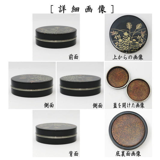 【茶器/茶道具 香合】 溜面取 武蔵野蒔絵 錫縁 谷川真斎作