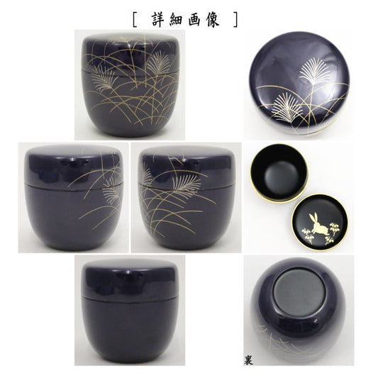 【茶器/茶道具 なつめ(お薄器) お月見】 中棗 紺 芒に兎 中村湖彩作 (薄・すすき・ススキ・うさぎ・ウサギ・兔)