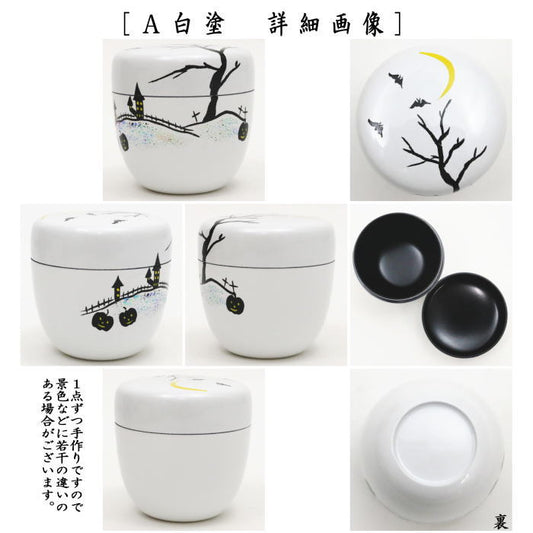 〇【茶器/茶道具 なつめ(お薄器)】 中棗 ハロウィン蒔絵 内黒塗り 白塗り又は銀塗り又は梨地塗り
