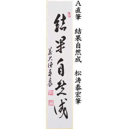 〇【茶器/茶道具 短冊】 直筆 結果自然成又は秋声満萬野又は開門落葉多(落葉多開門) 松涛泰宏筆(宗潤)(まつなみたいこう)