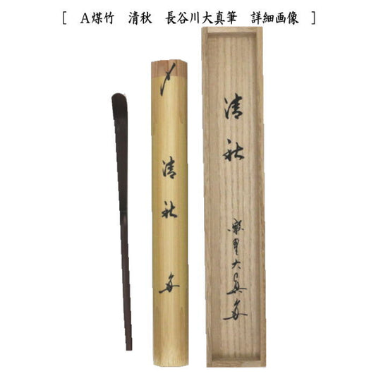 【茶器/茶道具 銘付茶杓】 煤竹 銘「清秋」又は「春風」 長谷川大真筆