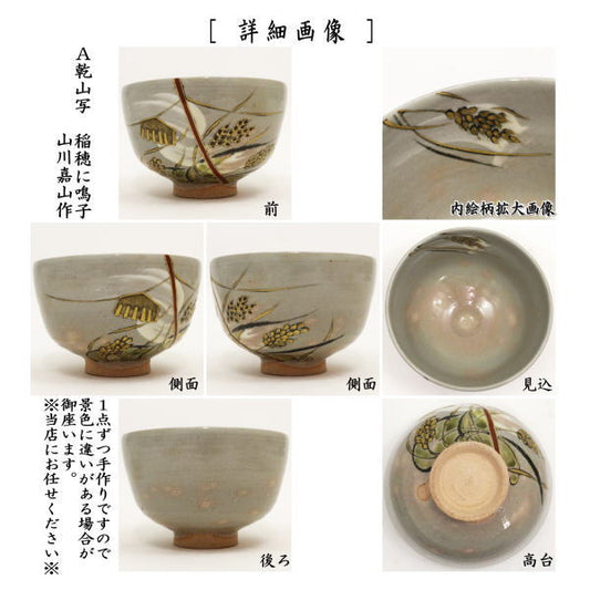 【茶器/茶道具 抹茶茶碗】 乾山写し 稲穂に鳴子又は案山子 山川嘉山作