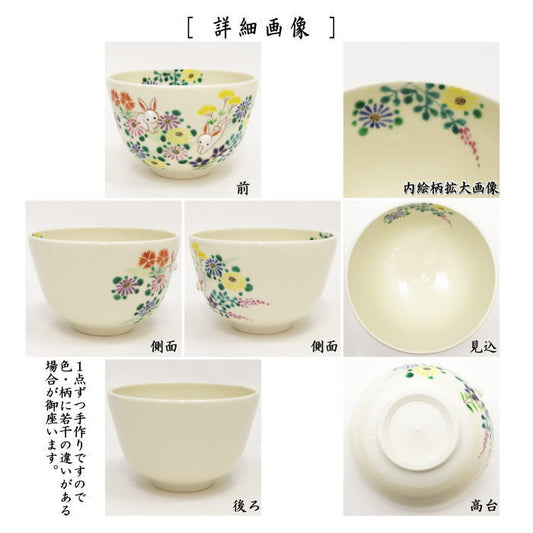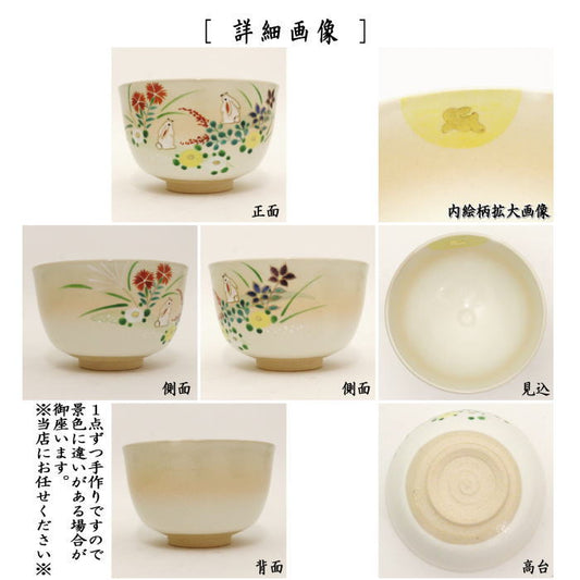 【茶器/茶道具 抹茶茶碗 お月見】 仁清写し 秋草に兎 丸印(浮出し) 小手鞠窯