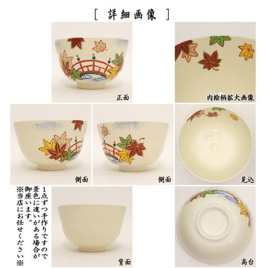 〇【茶器/茶道具 抹茶茶碗】 橋に紅葉 田中喜泉作