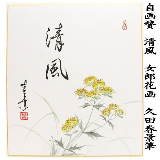 〇【茶器/茶道具 色紙画賛】 自画賛 清風 女郎花画 久田春景筆