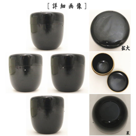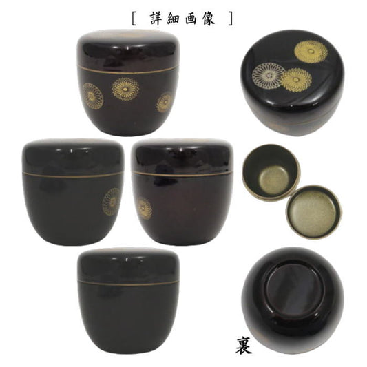 〇【茶器/茶道具 なつめ(お薄器)】 中棗 溜塗り 粒菊蒔絵 内梨子地(内梨地) 東雲作
