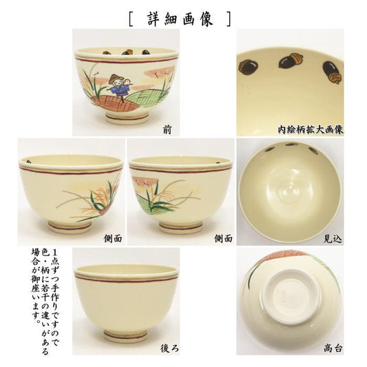 【茶器/茶道具 抹茶茶碗】 乾山写し 栗に雀 加藤利昇作 重陽の節句