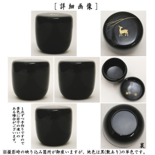 【茶器/茶道具 なつめ(お薄器)】 大棗 輪島塗り 鹿にもみじ蒔絵 内黒 浦出稲舟作