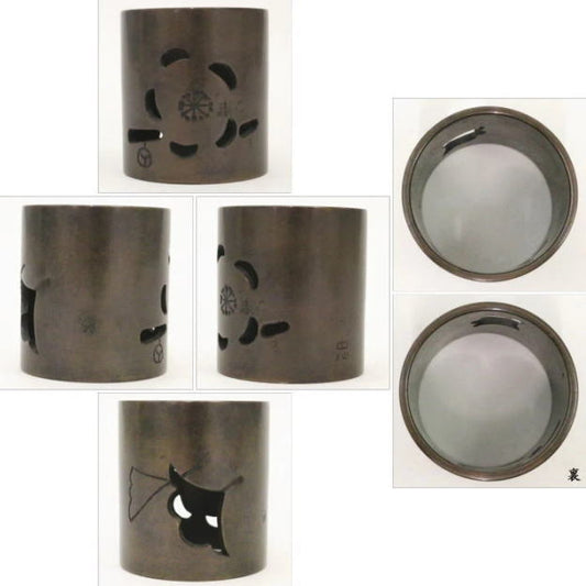 【茶器/茶道具 蓋置】 唐銅(唐金) 梅銀杏透かし 加藤忠三郎作