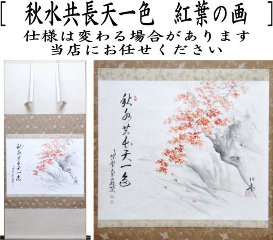 【茶器/茶道具 掛軸(掛け軸)】 横軸画賛 秋水共長天一色 小堀卓巌筆 紅葉の画 高園柏邨画