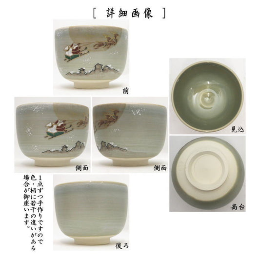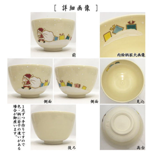 〇【茶器/茶道具 抹茶茶碗 クリスマス】 雪華にサンタクロース 伊坂清香作