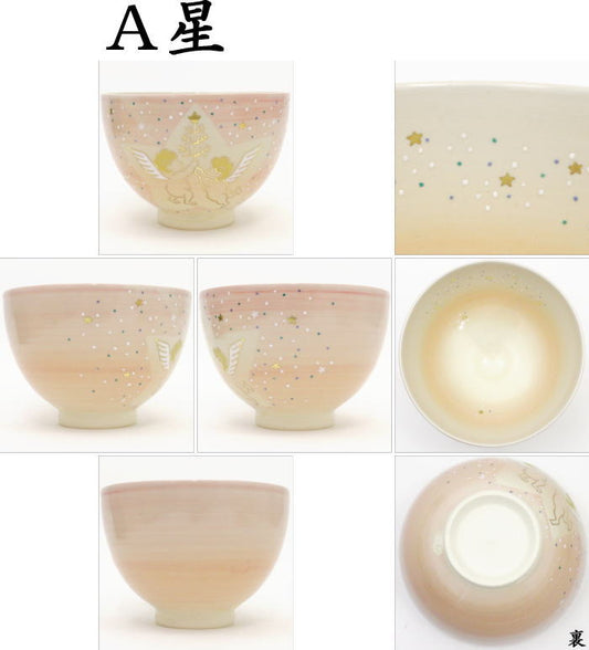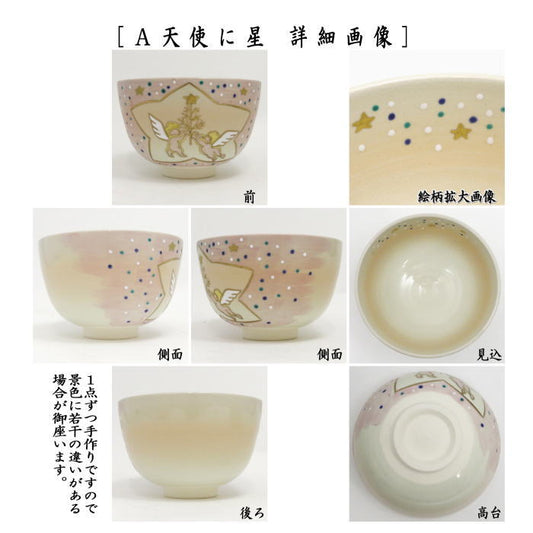 【茶器/茶道具 抹茶茶碗 バレンタインデー】 天使に星又はハート 中村華峰作