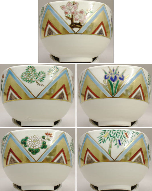 【茶器/茶道具 抹茶茶碗】 仁清写し 五節句 今岡都作 五角形