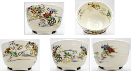 【茶器/茶道具 抹茶茶碗 端午の節句】 色絵茶碗 菖蒲 今岡都作