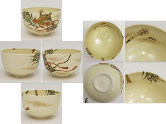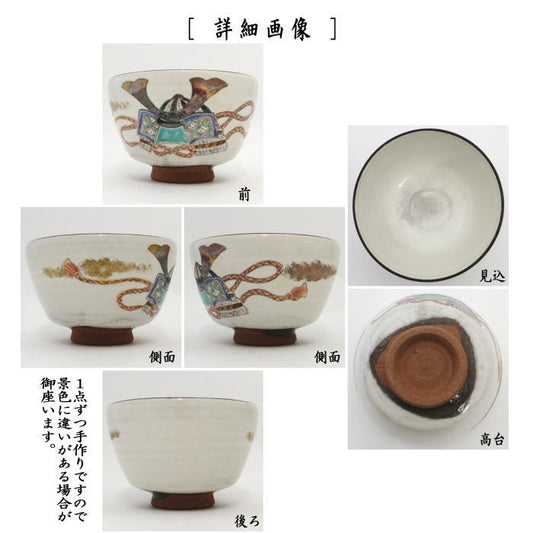 【茶器/茶道具 抹茶茶碗 端午の節句】 仁清写し 兜 木場紅園作(花山窯) (女流作家)