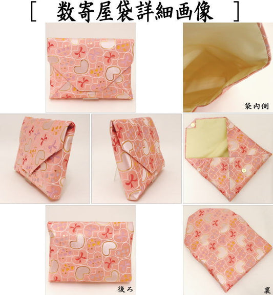 〇【茶器/茶道具 お稽古用/茶道初心者用】 入門者数寄屋袋6点セット(ハートにリボン) (正絹帛紗 楊子ステンレス製)