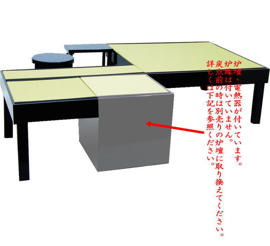 【茶器/茶道具 立礼棚/なごみ棚】 炉点前畳 電熱器 炉壇付タイプ 椿原流水作 建水台 椅子1台付(江戸間)
