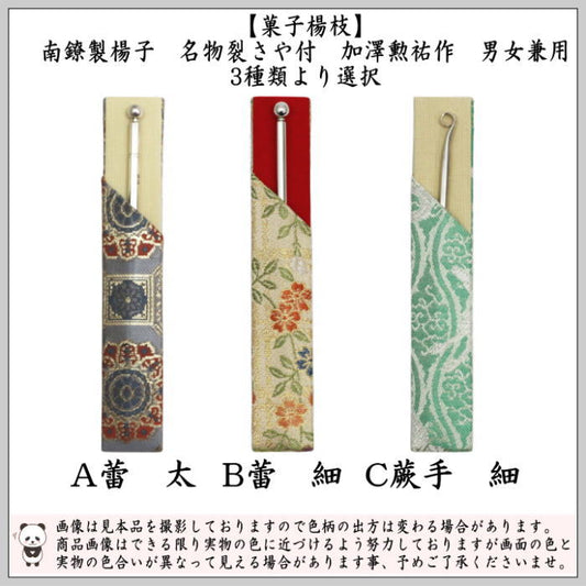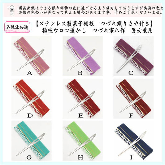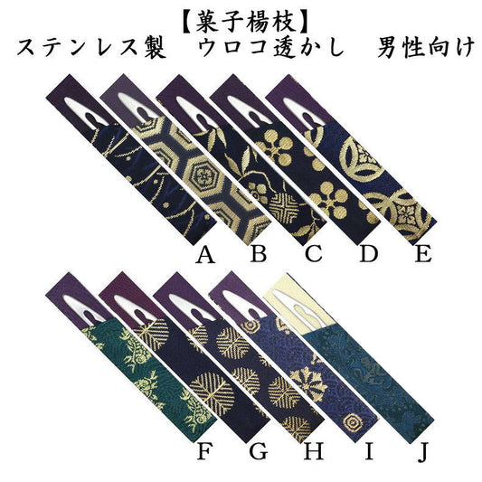 【茶器/茶道具 菓子楊枝(菓子楊子・菓子ようじ)】 ウロコ透かし 名物裂さや付 ステンレス製 男女兼用 MT
