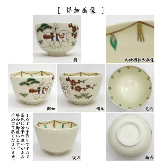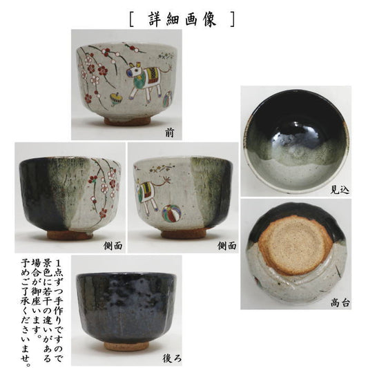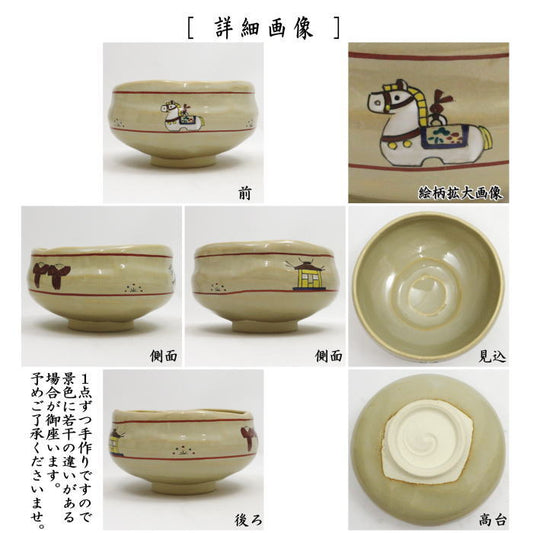 ☆☆【茶器/茶道具 抹茶茶碗 干支「午」】 干支茶碗 色絵茶碗 玩具馬 木村利斎作 (干支午 御題明) (干支 午・馬・うま・木村利斉作)