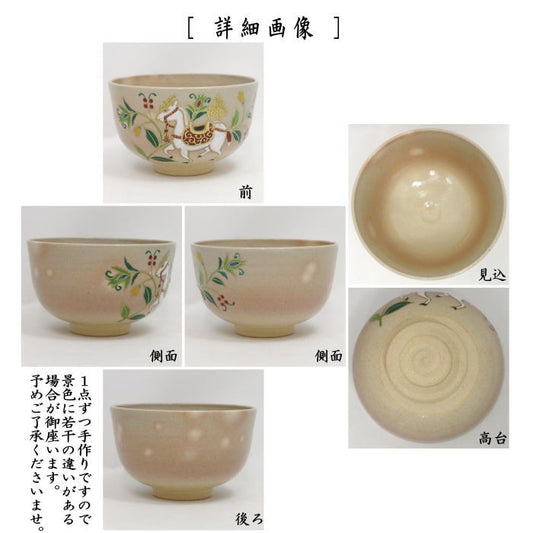 ☆☆【茶器/茶道具 抹茶茶碗 干支「午」西】 干支茶碗 仁清写し 神馬 山岡善高作 (干支午 御題明) (干支 午・馬・うま)