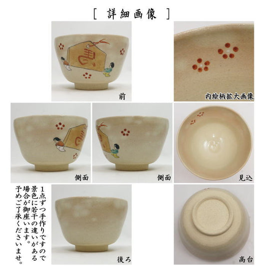 【茶器/茶道具 抹茶茶碗 干支「午」】 干支茶碗 色絵茶碗 春駒に羽子板 南口閑粋作 (干支午 御題明)