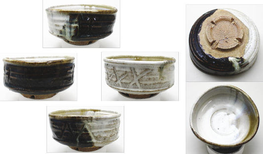 【茶器/茶道具 抹茶茶碗】 朝鮮唐津 沓形 十字割高台 岡本作礼作 (沓型・くつ形・くつ型)