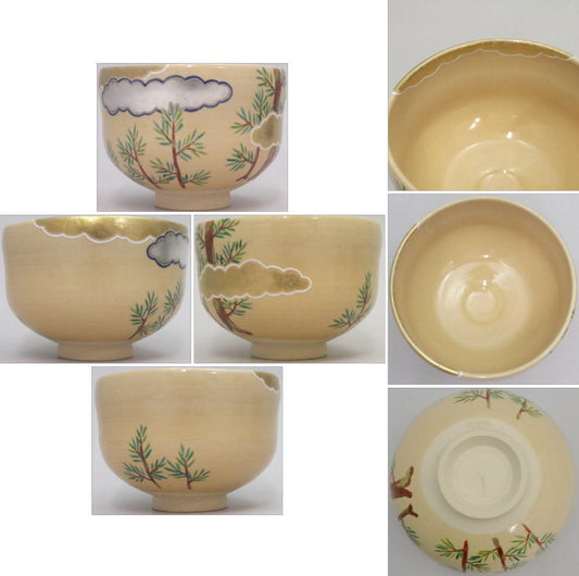 【茶器/茶道具 抹茶茶碗】 色絵茶碗 松竹梅 木場紅園作 花山窯