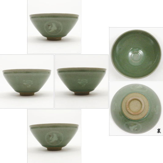 〇【茶器/茶道具 抹茶茶碗】 天目茶碗 青磁 雲鶴 川合正樹作