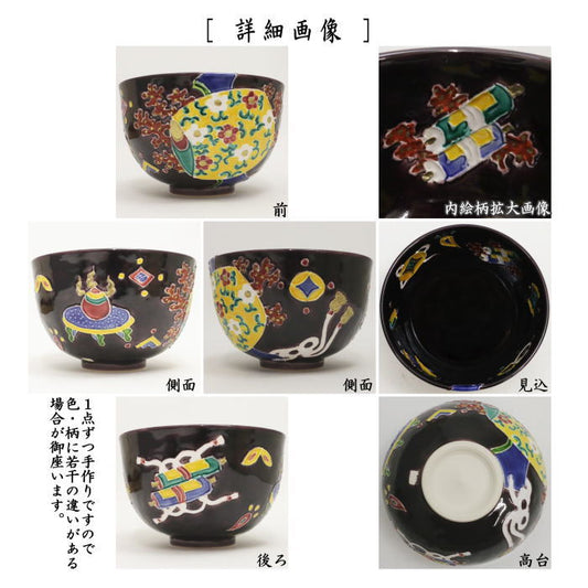 【茶器/茶道具 抹茶茶碗】 色絵茶碗 紫交趾焼き 宝尽し 加藤浩一作