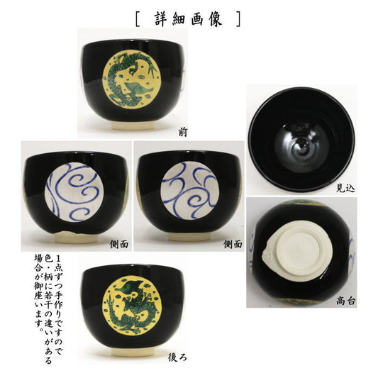 【茶器/茶道具 抹茶茶碗 干支「辰」】 干支茶碗 黒釉 丸紋 龍 通次阿山作 (干支辰 御題和)