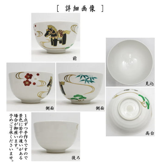 ☆☆【茶器/茶道具 抹茶茶碗 干支「午」】 干支茶碗 色絵茶碗 白馬節会 今岡都作 (干支午 御題明) (干支 午・馬・うま)