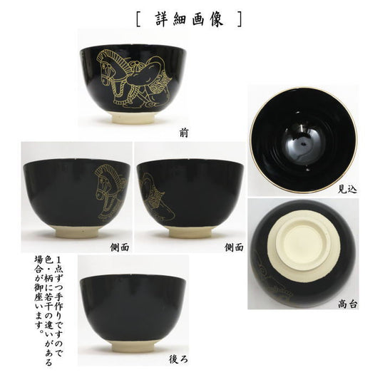 ☆☆〇【茶器/茶道具 抹茶茶碗 干支「午」】 干支茶碗 黒仁清写し 金彩飾午 隆山作 (干支午 御題明) (干支 午・馬・うま)