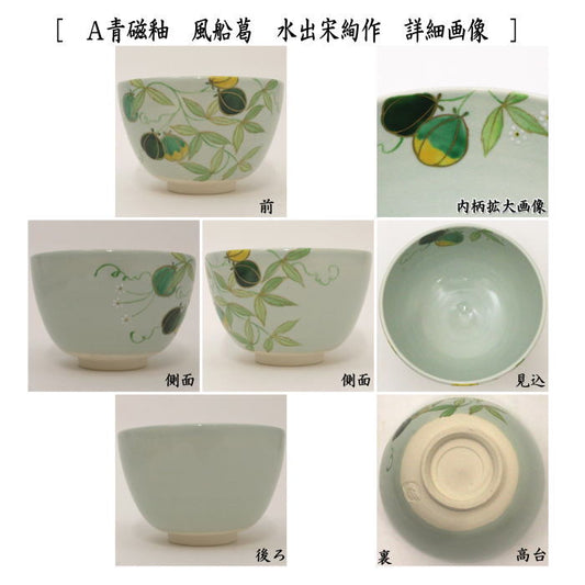 【茶器/茶道具 抹茶茶碗】 青磁釉 風船葛又は風船葛 水出宋絢作 2種より選択