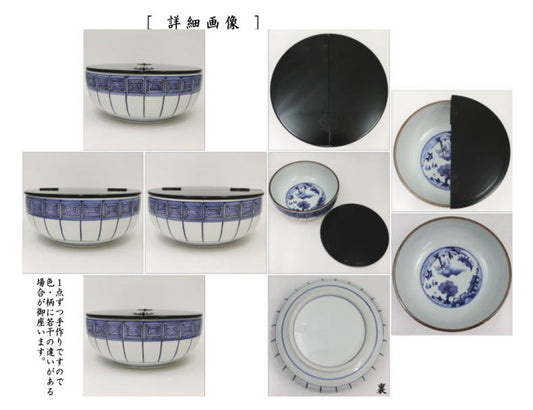 【茶器/茶道具 水指(水差し)】 平水指 染付 桶側(桶川) 割蓋 手塚桐鳳作 (塗蓋)