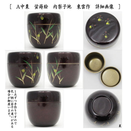 〇【茶器/茶道具 なつめ(お薄器)】 中棗 溜塗り 蛍蒔絵 内梨子地(内梨地)又は内梨子地に芦(内梨地に芦) 東雲作
