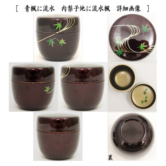 〇【茶器/茶道具 なつめ(お薄器)】 中棗 溜塗り 青楓に流水 内梨子地に流水楓(内梨地に流水楓)又は青楓 内梨子地に翡翠(内梨地に翡翠) 東雲作