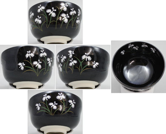 〇【茶器/茶道具 抹茶茶碗】 黒仁清写し 鷺草 宮地英香作