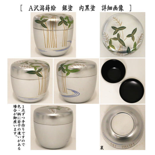 【茶器/茶道具 なつめ(お薄器)/季節の棗】 中棗 沢潟蒔絵(おもだか)銀塗り 内黒塗り又は蛍蒔絵 内銀地 西斎作 樹脂製 2種類より選択