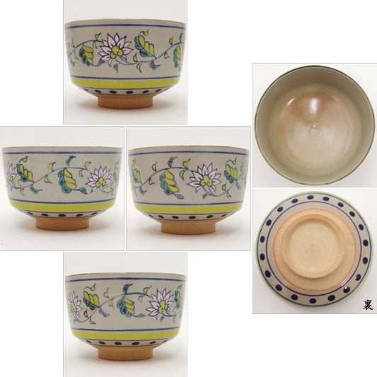 〇【茶器/茶道具 抹茶茶碗】 色絵茶碗 蓮と翡翠 加藤永山作