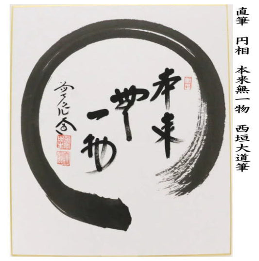 【茶器/茶道具 色紙画賛】 直筆 円相 本来無一物又は無盡蔵(無尽蔵) 西垣大道筆