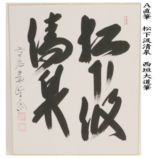 【茶器/茶道具 色紙】 直筆 松下汲清泉又白雲抱幽石 西垣大道筆