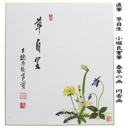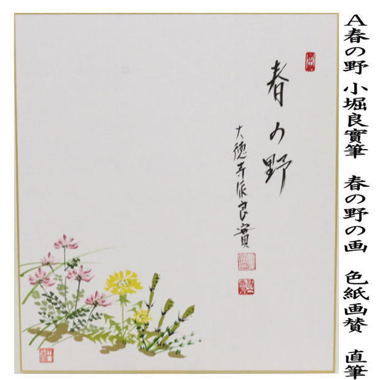 【茶器/茶道具 色紙画賛】 直筆 春の野 小堀良實筆 春の野の画又は草自生 橋本紹尚筆(柳生紹尚筆) 蓮華の画 2種類より選択