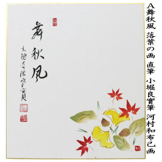 【茶器/茶道具 色紙画賛】 直筆 舞秋風 落葉の画又は満山川 紅葉の画 小堀良實筆 河村和布己画 2種類より選択 (前大徳寺派)