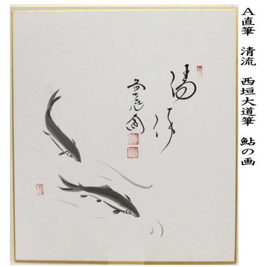 【茶器/茶道具 色紙画賛】 直筆 清流 西垣大道筆 鮎の画又は菖蒲の画