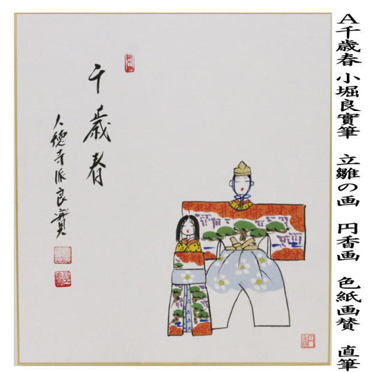 【茶器/茶道具 色紙画賛 ひな祭り】 直筆 千歳春又は笑春風 小堀良實筆 立雛の画 円香画 2種類より選択