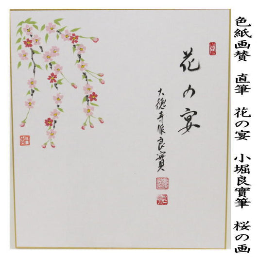 【茶器/茶道具 色紙画賛】 直筆 花の宴 小堀良實筆 桜の画