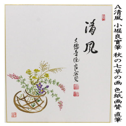 【茶器/茶道具 色紙画賛】 直筆 清風 秋の七草の画又は万里秋 萩と芒の画 小堀良實筆 2種類より選択