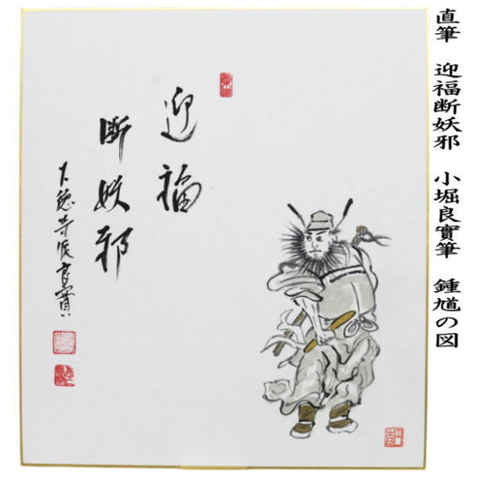 【茶器/茶道具 色紙画賛】 直筆 迎福断妖邪 小堀良實筆 鍾馗の図