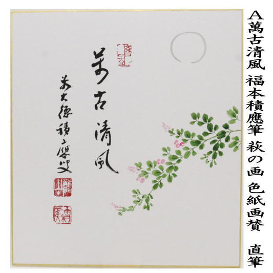 【茶器/茶道具 色紙画賛】 直筆 萬古清風 福本積應筆 萩の画又は東籬佳秋色 前田宗源筆 菊の画 2種類より選択
